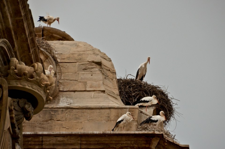 Nidos en el tejado de las torres de la catedral de Lleida